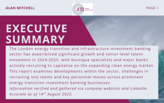 The team at Alan Mitchell have recently compiled a comprehensive ETI Report detailing the growth, recruitment challenges, and senior-level talent movement across the sector. The London energy transition and infrastructure investment banking sector has experienced significant growth and senior-level talent movement in 2024-2025, with boutique specialists and major banks actively [...]